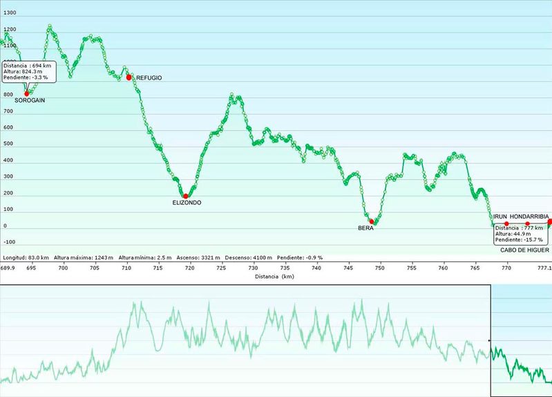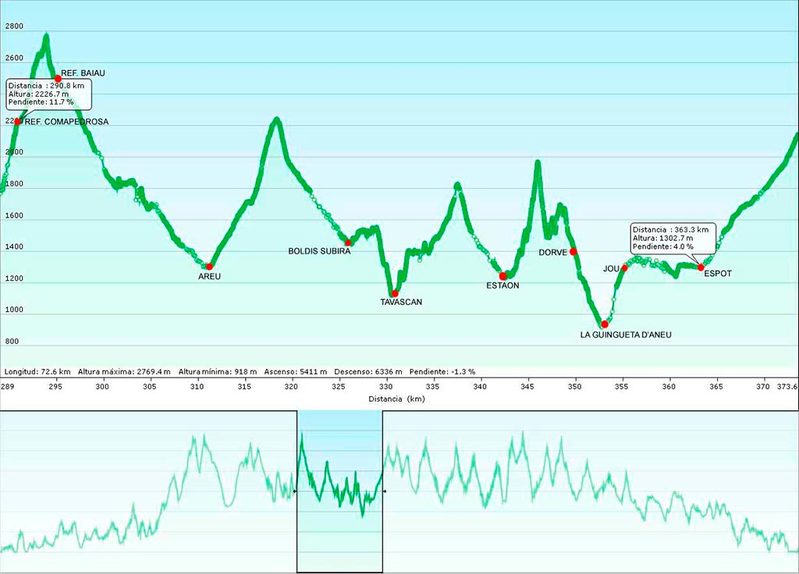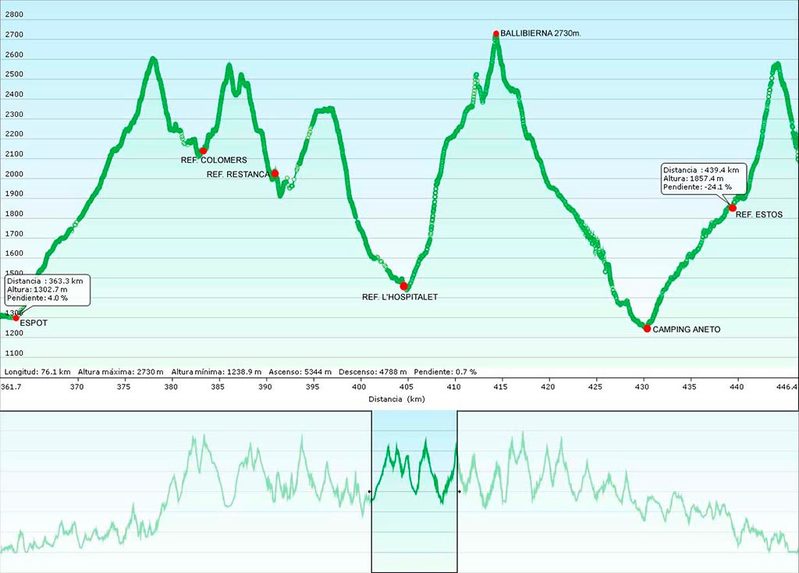Esta es una etapa que debería permitirnos cierta recuperación dado su desnivel que, en relación a etapas anteriores, parece más asequible, si bien no deja de ser superior a 3000m positivos…