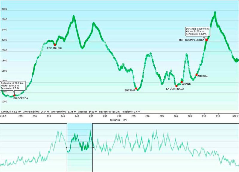 El punto final de esta etapa en Puigcerdá, nos permitirá de nuevo reponer fuerzas y volver a abastecernos de cara a las etapas venideras.